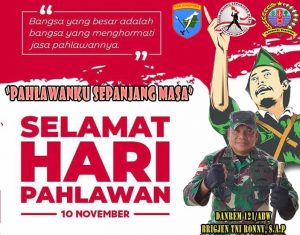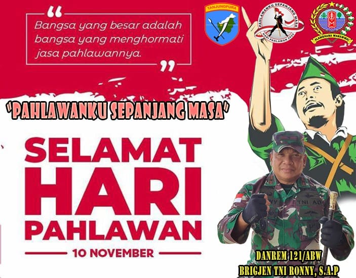 Selamat Hari Pahlawan Ke-75 “Pahlawanku Sepanjang Masa” 10 November 2020 oleh Redaksi Korem 121/abw Selamat Hari Pahlawan Ke-75 “Pahlawanku Sepanjang Masa” #TNIADMengabdiDanMembangunBersamaRakyat