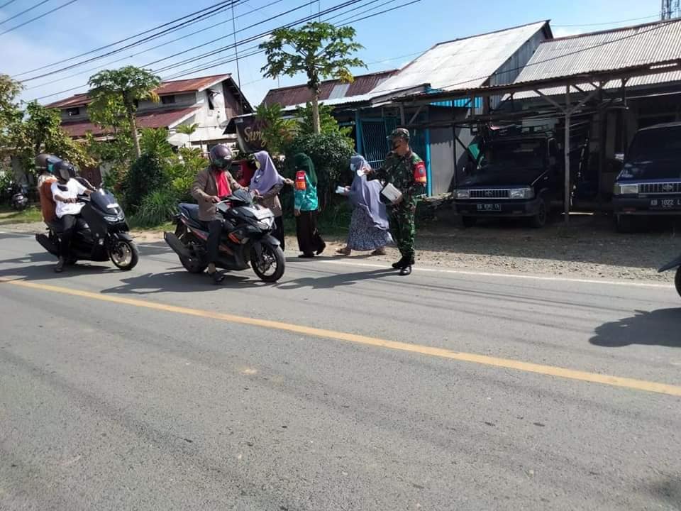 Babinsa Koramil 05/Skw Serda Kamid Abadi bersama satgas kelurahan tangkal Covid-19, bagikan masker kepada masyarakat yang ada di sekitaran Kel. Jawa Kec. Singkawang Tengah Kota Singkawang, Jum’at (14/11/20).