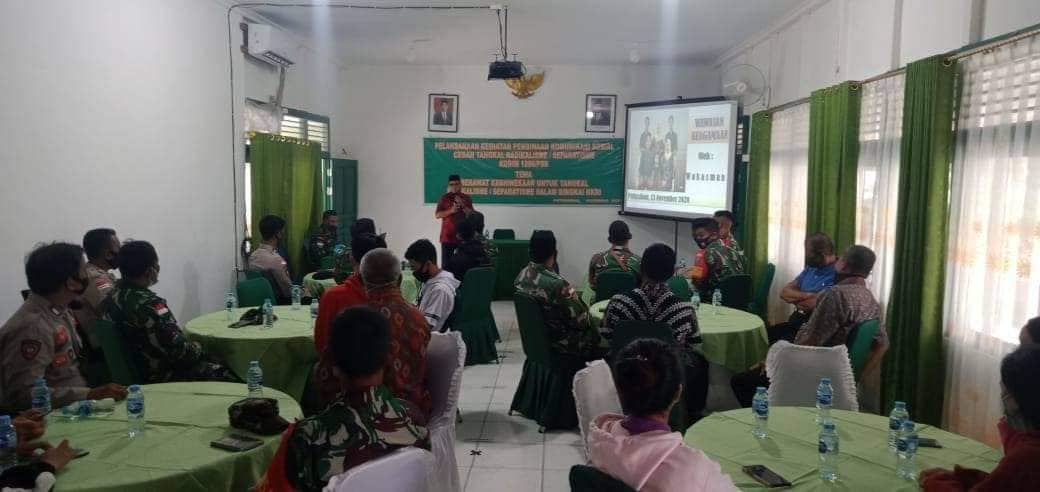 Dandim 1206/PSB yang diwakili Kepala Staf Mayor Inf Agus Jaelani S.E dalam arahannya mengatakan kegiatan komunikasi sosial cegah tangkal radikalisme perlu dilaksanakan untuk mewujudkan kesadaran masyarakat tentang arti pentingnya pemahman terhadap bahaya radikalisme dan separatisme bagi segenap komponen bgs agar terbentuknya komponenn bangsa yang berkepribadian dan berjiwa Bhineka Tunggal Ika guna mendukung ketahanan wilayah yang kuat dalam rangka tetap tegak dan utuhnya NKRI yang berdasarkan Pancasila dan UUD 1945.