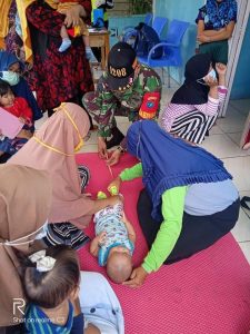 Babinsa 02/Sejangkung yakni Serda Adi Juhri dan dibantu oleh Serda Suhudi melakukan pendampingan, ke dua Anggota tersebut memastikan kegiatan Posyandu berjalan dengan lancar, baik dan maksimal,” ucap Dandim 1208/Sambas, Letkol Inf Setyo Budiyono SH. M.Tr (Han) melalui Danramil 02/Sejangkung, Kapten Inf Aris Yudiana.