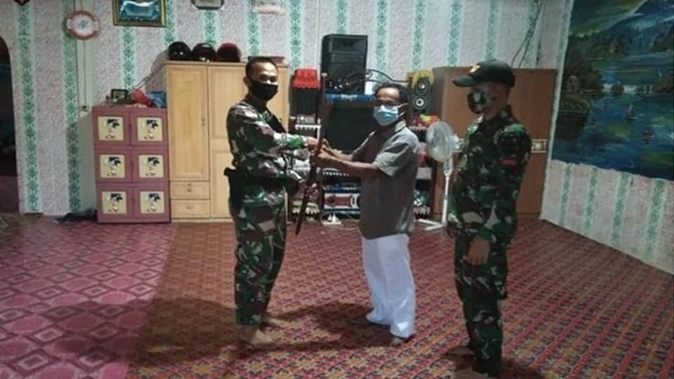 Kegiatan Pembinaan Teritorial (Binter) Satuan Tugas (Satgas) Pengamanan Perbatasan (Pamtas) Batalyon Infanteri (Yonif) 407/Padmakusuma Kodam IV/Diponegoro yang dilaksanakan di daerah penugasan wilayah perbatasan RI-Malaysia kembali membuahkan hasil. Kali ini, Pos Sei Mawang I Satgas Pamtas Yonif 407/PK telah menerima 1 Senjata rakitan berjenis penabur yang diterima dari perangkat Dusun Melancau Desa Sungai Mawang Bapak AM (47) dan 1 Senjata berjenis lantak yang diterima dari Saudara LG (42) yang bekerja sebagai petani di Dusun Sei Mawang Desa Sungai Mawang Kecamatan Puring Kencana Kabupaten Kapuas Hulu, Kalimantan Barat. Kamis (12/11/2020)