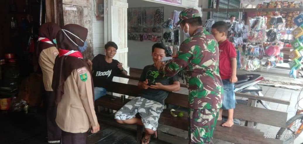 Lebih lanjut Ia mengatakan,”Hari ini kami bersama teman – teman dari Polri, Satpol PP, Pemuda pancasila membagikan masker, Pemasangan pamvlet serta pelaksanaan Edukasi / Himbauan tentang Protkes yang kami pusatkan di Pasar Sekura” Ucapnya