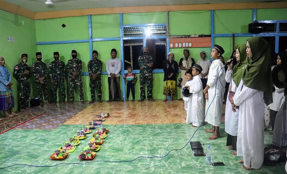 Satgas Pamtas RI-MLY Yonif 407/PK bersama masyarakat Perbatasan RI-MLY menggelar peringatan Maulid Nabi Muhammad SAW 1442 H bertempat di Masjid Nurul Huda di Desa Badau Tengah, Kec. Badau, Kab. Kapuas Hulu, Kalbar.