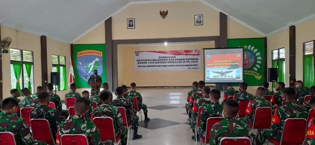 SINTANG – Guna memberikan pengetahuan tentang Komunisme dan Radikalisme, Kodim 1205/Sintang gelar pembinaan bahaya laten Komunis (Balatkom) dan Radikal di aula Makodim Sintang, Jl. Pembangunan, Kelurahan Tanjung Puri, Sintang pada Rabu (18/11/2020).