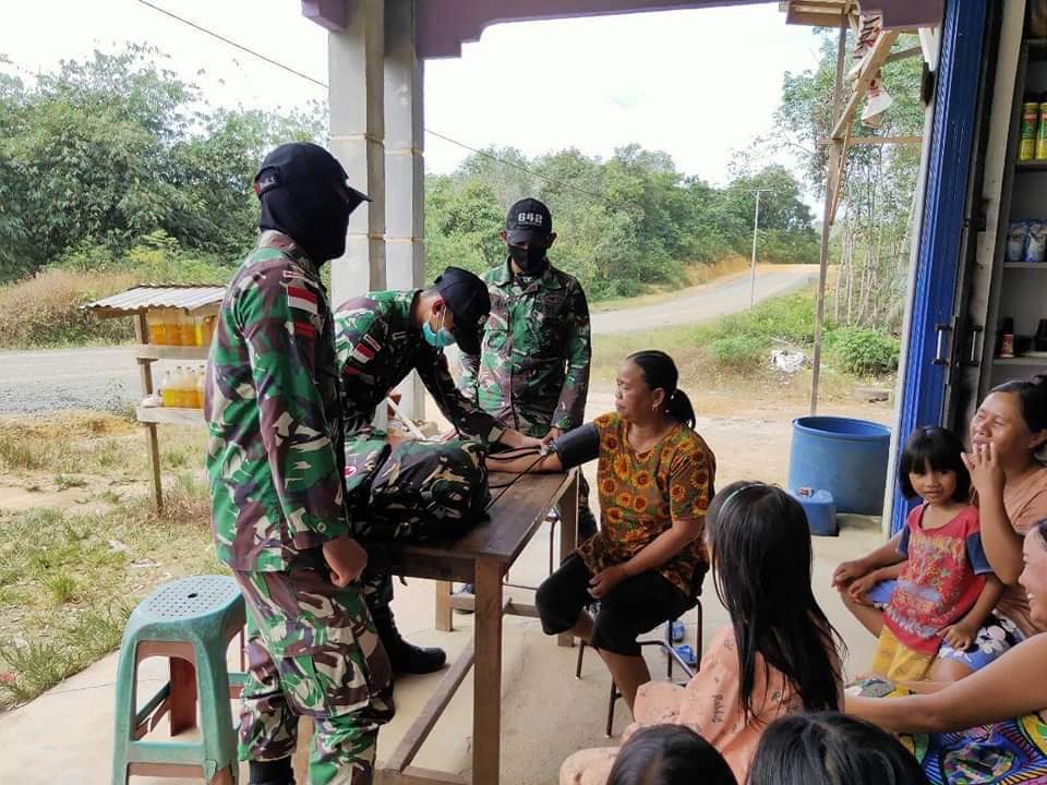 “Sembari melaksanakan kegiatan anjangsana untuk berkomunikasi dengan masyarakat kita berikan Pelayanan Kesehatan dengan tujuan untuk memelihara kondisi kesehatan masyarakat di daerah perbatasan agar tetap dalam kondisi baik.” Ujar Dansatgas.