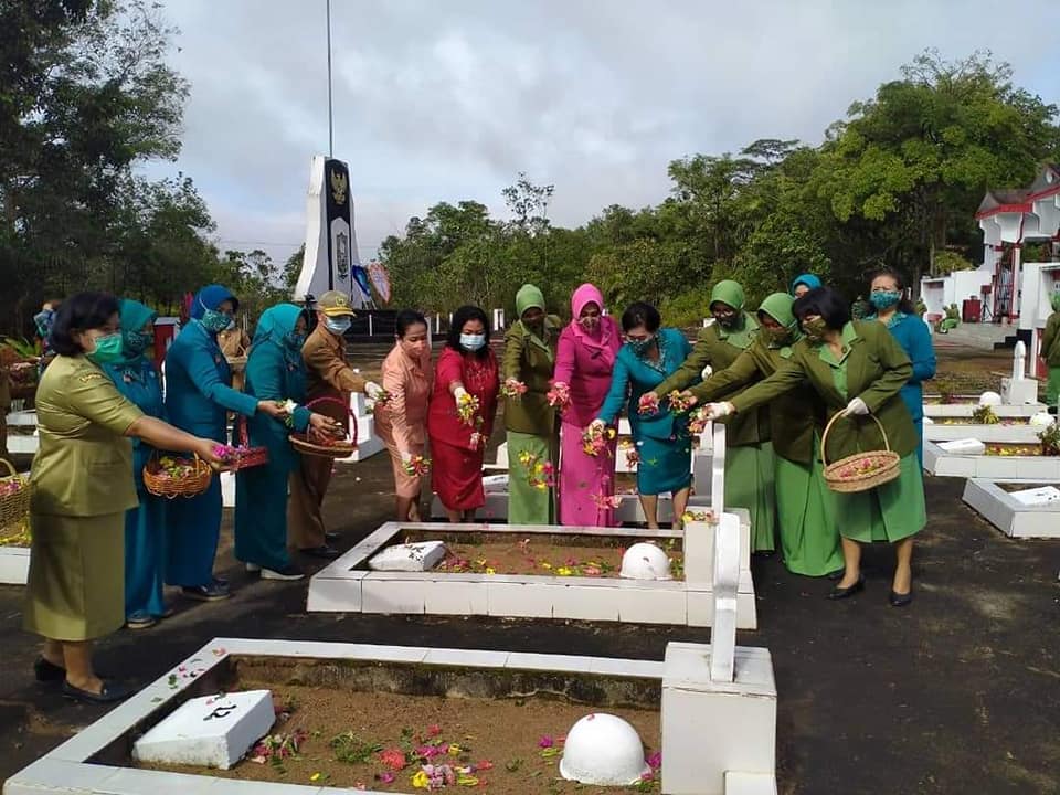 SANGGAU – Ketua Persit Kartika Chandra Kirana Cabang XLVIII Kodim 1204/SAGGAU Ny Dian Khairina Affiansyah melaksanakan ziarah ke makam pahlawanPatriot Bangsa, jln Jendral Sudirman KM 10 Kelurahan Bunut Kecamatan Kapuas, dalam rangka peringatan Hari Ibu ke-92 (07/12/2020).