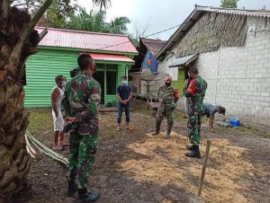 Sementara itu Danramil Mandor, Kapten CZI Joko Umbaran menyampaikan apresiasi kepada masyarakat yang ikut pengerjaan rumah Uging.