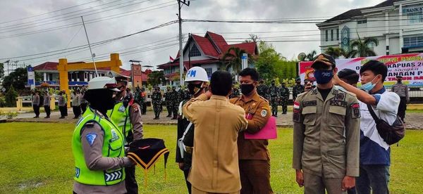 Letkol Inf Basyaruddin S.S menghadiri Apel Gelar Pasukan Operasi Lilin Kapuas Tahun 2020 dalam rangka Natal dan Tahun Baru 2021, di Mako Polres Kapuas Hulu Kabupaten Kapuas Hulu, Senin (21/12/2020).