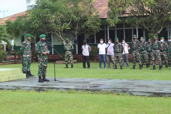 Dalam arahannya Dandim 1203/Ktp Letkol Kav. Suntara Wisnu Budi Hidayanta.SH.M.Sc, menyampaikan beberapa penekanan tentang situasi yang berkembang akhir-akhir ini dalam kehidupan prajurit.