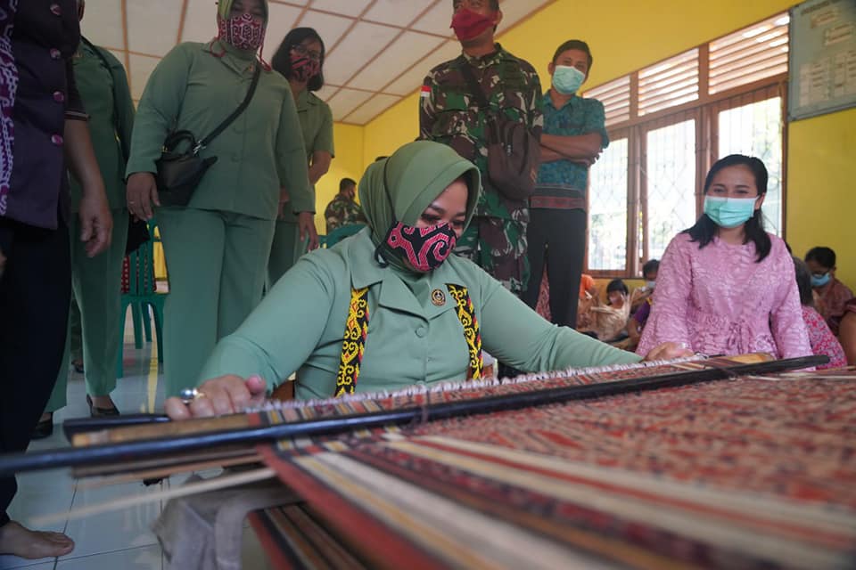 Sintang, Ketua Persit KCK Korcab Korem 121 PD XII Tanjungpura Ibu Rissa Ronny berkunjung ke pengrajin Kain tenun, tepatnya di Desa Gembara Raya, Kecamatan Kelam Permai, Kabupaten Sintang, Rabu,(06/1/2021).
