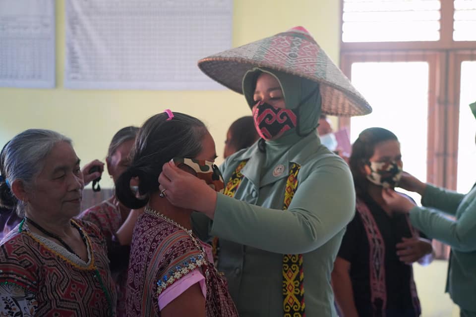 Guna mencegah dan memutus rantai penyebaran COVID-19 Persit KCK Koorcab Rem 121 PD XII Tanjungpura gencar melaksanakan Bakti sosial, saat ini kepada masyarakat Desa Gembara Raya Kec. Kelam Permai, Kab. Sintang.
