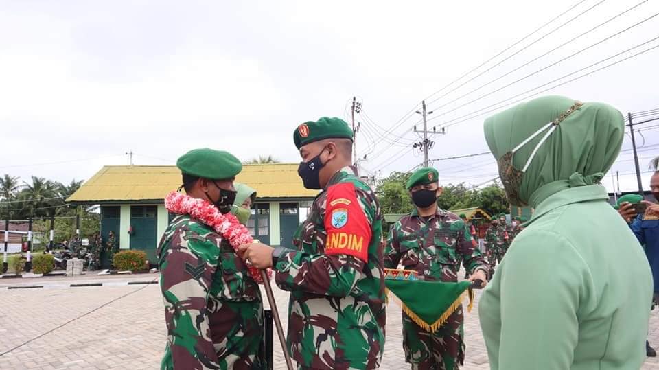 Mempawah : Dandim 1201/Mempawah Letkol Inf. Dwi Agung Prihanto memimpin upacara wisuda purna tugas Sertu Muhidin, personil Kodim Mempawah di halaman Makodim, Jalan Terusan Kabupaten Mempawah, Senin (11/1/2021) pagi.