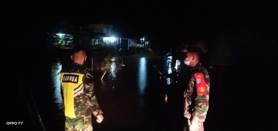 Bengkayang – Anggota Koramil 1202-04/Seluas cek debit air sungai pasca curah hujan yang cukup tinggi beberapa hari ini yang menyebabkan terjadi nya banjir di Dusun Bangum Kecamatan Seluas Kabupaten Bengkayang, Selasa(12/1/2021) Malam.