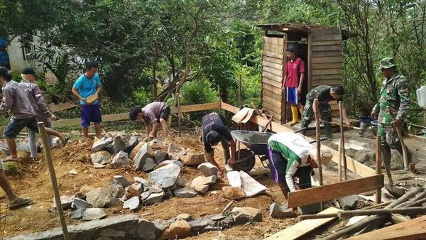 “Hari kedua ini, sesudah tahap merobohkan rumah Bapak Suryadi kita masuk ke tahap memasukan tanah dan batu serta membuat pondasi,” ucap Kapten Czi Kiki Gunawan.