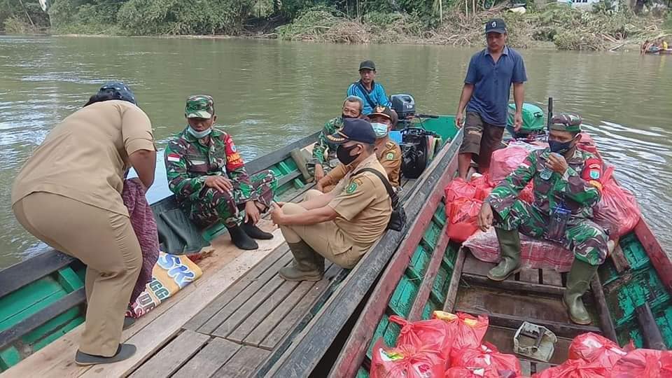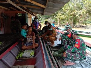 Bengkayang – Babinsa 1202-02/Sanggau Ledo, Serda Zetendra beserta 1 orang Anggota Bersama Kades Danti dan Staf Desa Danti Melaksanakan Monitoring Wilayah Banjir Bertempat di Dusun Momong dan Dusun Engkanang Desa Danti, Kecamatan Sanggau Ledo, Kabupaten Bengkayang, Kalbar, Selasa (19/1/2021).
