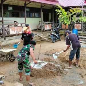 Disisi lain para personil Kodim Sambas yang dipimpin Danramil01/Sambas Kapten Inf Sulistiono sebagai motor pada kegiatan tersebut tampak penuh semangat melakukan perbaikan sekolah pada program Petasan gagasan Korem 121/Abw.