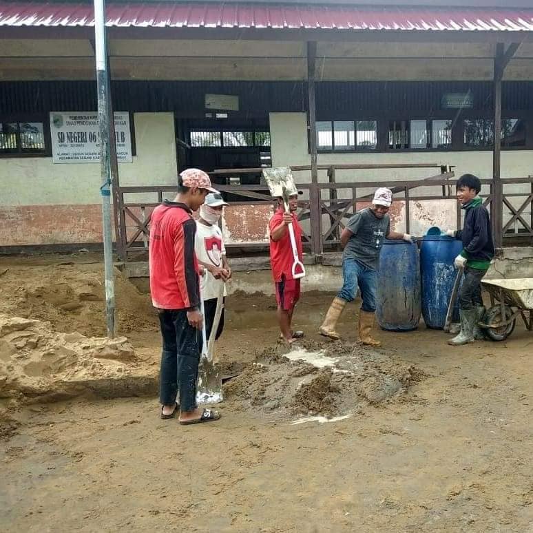 Sambas, Komandan Koramil 01/Sambas Kapten Inf Sulistiono yang didaulat memimpin kegiatan Program Pengabdian Tanpa Batas Tentara di Perbatasan (PETASAN) terus melakukan pengerjaan perehapan sekolah SDN 06 Sebawi di Desa Sebangun Kec. Sebawi, Jum’at (29/01/2021)