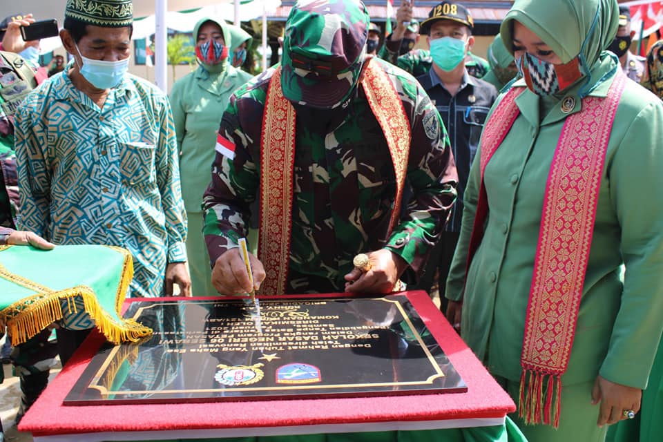 Sambas, Danrem 121/Abw Brigjen TNI Ronny S.A.P resmikan renovasi pembangunan SDN 06 B dalam program PETASAN (Pengabdian Tanpa Batas Tentara di Perbatasan) di Desa Sebangun, Kecamatan Sebawi, Kabupaten Sambas, Kalimantan Barat. Kamis(11/2/2021).