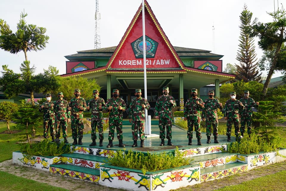 Sintang, Danrem 121/Abw Brigjen TNI Ronny S.A.P menerima kunjungan Pa Sahli TK II Kasad bidang Was Eropa dan Amerika Brigjen TNI Benny Sulistiono dan rombongan di Korem 121/Abw jln Pangeran Kuning no 1 Sintang, Selasa, 16/2/2021.
