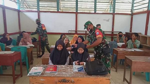 Babinsa Koramil 07/Sintang, Koptu Gema, bersama beberapa anggota lainnya sengaja memberikan sosialisasi 3 M serta pembagian masker, agar anak-anak di Ponpes Nurul Ma’arif tetap memematuhi protokol kesehatan.