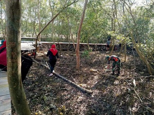 Singkawang – Babinsa Koramil 1202-05/Skw Pimpinan Serma Maryo beserta 10 anggota lain nya melaksanakan kegiatan Jum’at bersih dalam rangka “Hari Sampah” yang bertempat di Taman Wisata Mangrove/Hutan Bakau, Kelurahan Kuala, kecamatan Singkawang Barat, Kota Singkawang, Sabtu (27/8/21).