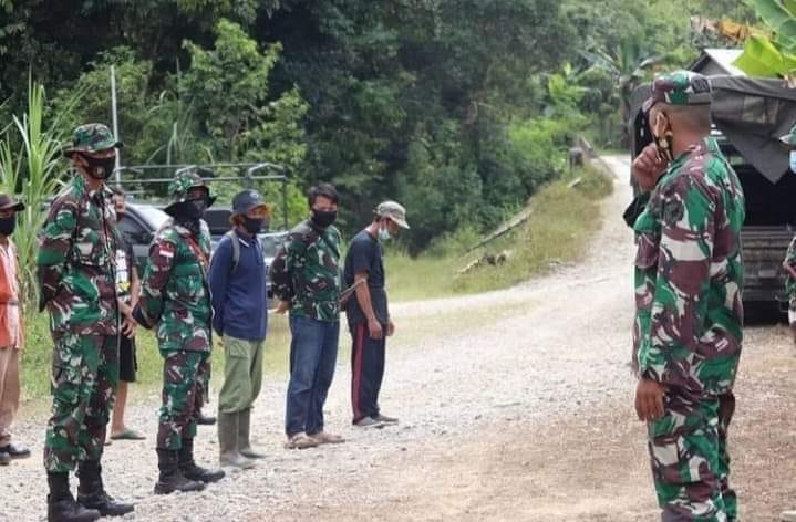 Dandim 1202/Skw Letkol Inf Condro Edi Wibowo, S.Sos., M.Han jelaskan tentang protokol kesehatan, “Ini merupakan bentuk dukungan Satgas TMMD terhadap penerapan protokol kesehatan Covid-19 di lokasi pelaksanaan TMMD di Desa Hulu Pengkadan.