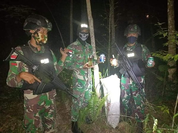 Sedangkan puluhan botol Miras yang terdiri dari 36 botol merk Benson, 6 botol merk Tiger dan 6 botol Merk Kingway tersebut berhasil diamankan personel Pos Temajuk saat kegiatan ambush dipimpin Letda Inf Ryan Hidayat di sektor yang sudah ditentukan sekitar Dusun Sempadan.