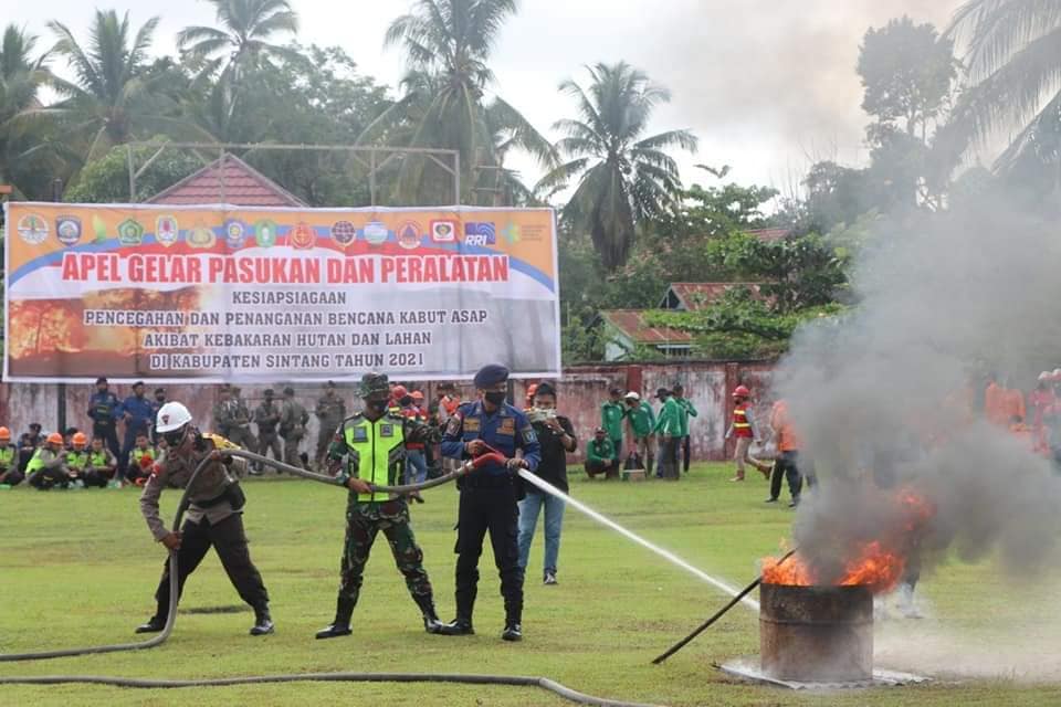 Setelah apel ini segera bentuk posko siaga karhutla di setiap kecamatan dan desa dan kelurahan melaksanakan kegiatan pencegahan dengan melakukan penyuluhan ke rumah-rumah penduduk kemudian melaksanakan patroli terpadu mengecek daerah-daerah yang potensial terjadinya kebakaran kepada dinas dan instansi terkait, laksanakan pendidikan non-formal kepada masyarakat hingga kedalaman bawah tentang tata cara membuka lahan tanpa membakar dan dengan cara membakar secara terbatas dan terkendali sebagaimana telah diatur dalam peraturan Bupati Sintang nomor 18 dan 31 tahun 2020 secara maksimal. Upaya himbauan ajakan melalui media tatap muka, media cetak dan elektronik serta media sosial, media tradisional dan media dakwah lingkungan hidup kita, lanjutnya.