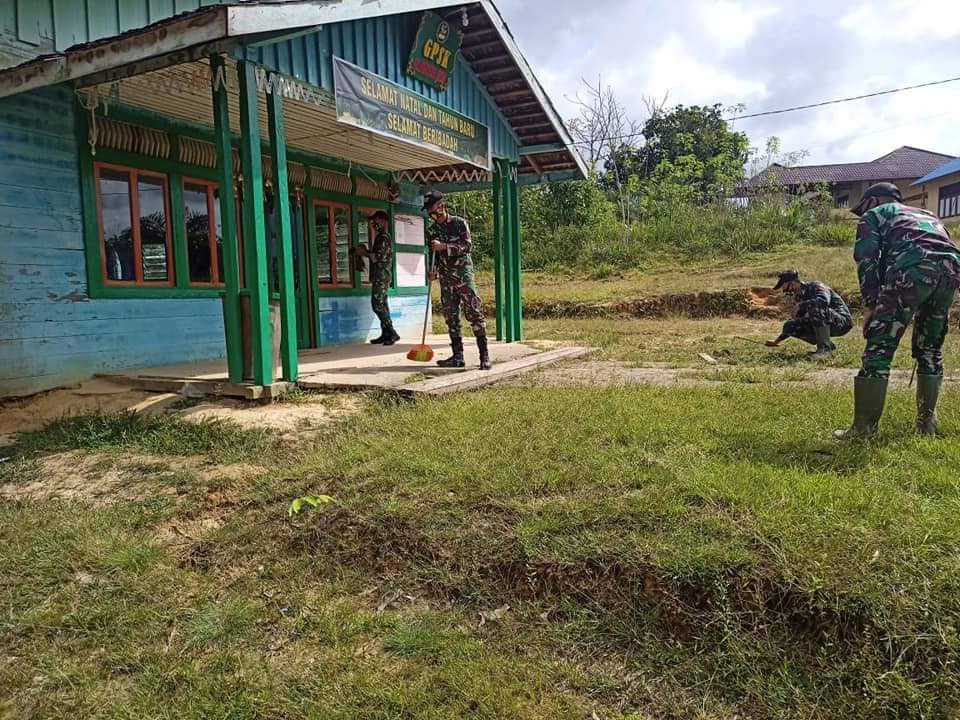 Kegiatan yang dipimpin Pratu Dwi Romo dan 3 anggota Pos Kampung Jasa membersihkan Gereja yang bertujuan untuk kenyamanan masyarakat dalam beribadah, serta merupakan wujud kepedulian Pos Kampung Jasa yang selalu berusaha melakukan yang