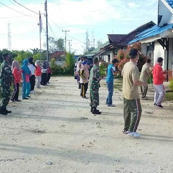Sambas, Bersama Pegawai Puskesmas menjaga sistim imun terhindar penyakit, Koramil 1208-02/ Sejangkung menggelar senam, yang beralamat di Halaman Puskesamas Sejangkung, Jalan H. M. Syar’ie Dahlan Rt/Rw 013/007 Dsn. Sembuai, Desa Parit Raja, Kec. Sejangkung, Kab. Sambas, Jumat (19-3-21)