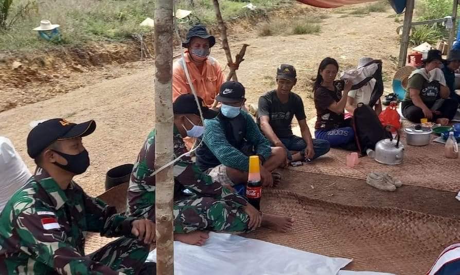 Satuan Tugas Pengamanan Perbatasan (Satgas Pamtas) RI-Malaysia Yonif 407/PK Pos Sei Mawang II Mensosialisasikan tentang larangan memiliki senjata api kepada warga Dusun Sei Mawang, Ds. Sei Mawang, Kec. Puring Kencana, Kab. Kapuas, Kalbar. Jumat (19/03/21)