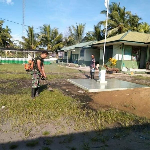 Sambas – Dalam rangka memelihara pangkalan, Anggota Koramil 1208-07/Sekura melaksanakan pembersihan halaman Makoramil yang berada di Dsn. Sekura, Desa Sekura, Kec. Teluk Kramat, Kab. Sambas, Sabtu (20/3/2021).