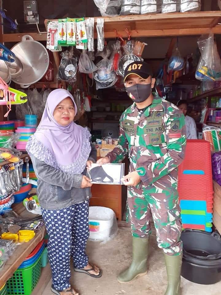 Pembagian masker gratis yang dilakukan oleh personel Pos Mentari Satgas Pamtas Yonif 407/PK di Desa Badau, Kec. Badau, Kab. Kapuas Hulu, Kalimantan Barat bertujuan mengajak masyarakat untuk bersama-sama mencegah penyebaran Covid-19 di wilayah perbatasan RI-Malaysia.