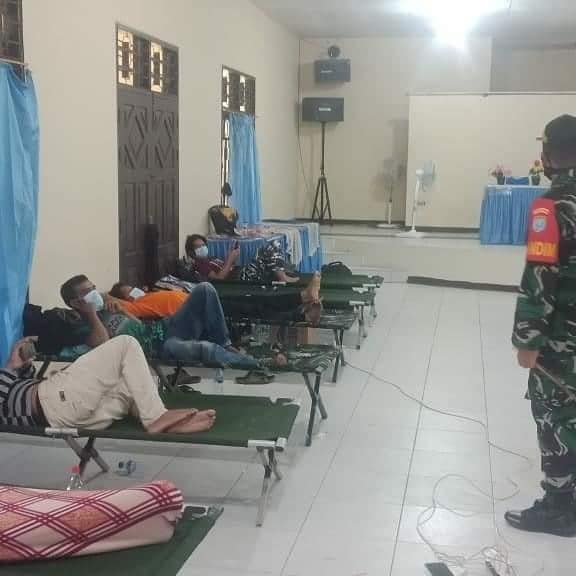 “Hari Ini Kata Dandim” Ada 58 Orang PMI yang kami geser ke Mess Pemda Sambas agar pendataan lebih mudah, Mengingat sebagian para PMI berasal dari berbagai daerah di Indonesia sehingga harus terus diberikan pemahaman serta Edukasi agar dapat memproteksi diri mereka dari ancaman Covid 19″
