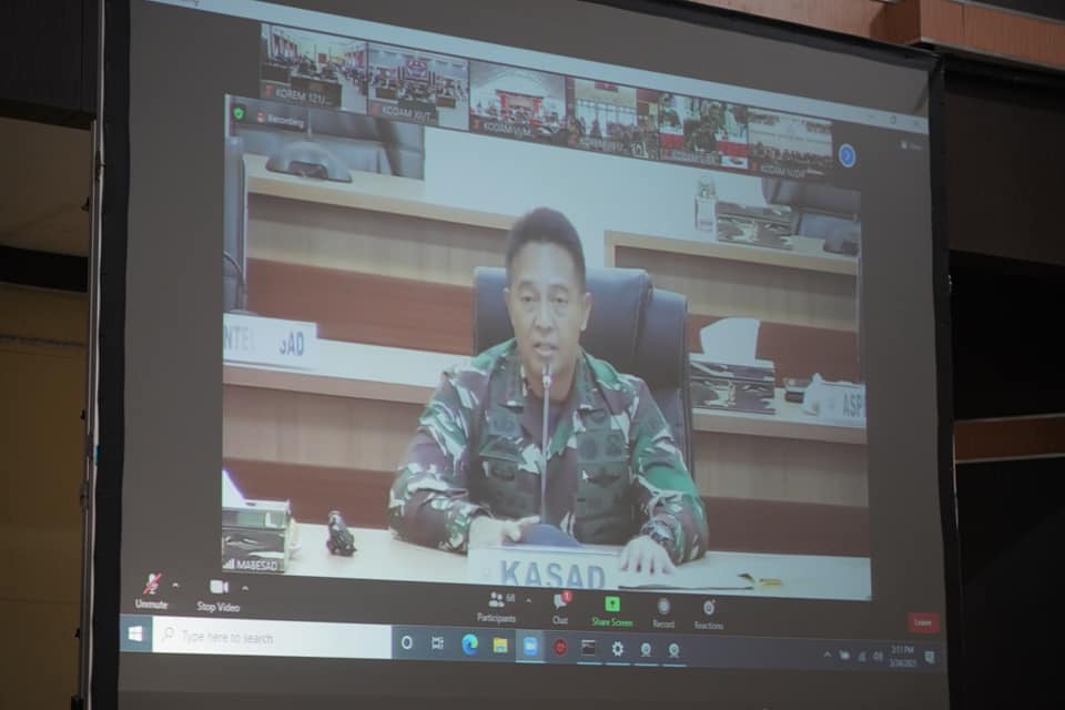 Turut hadir dalam Vicon yaitu Danrem 121/Abw, Kasrem 121/Abw, panitia penerimaan calon prajurit Tamtama PK TNI AD gel I tahun 2021.