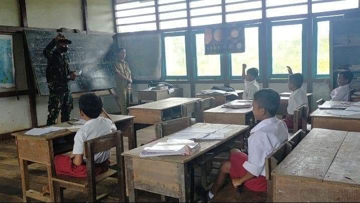Dalam rangka mencerdaskan anak bangsa diwilayah perbatasan RI-Malaysia, Satgas Pamtas Yonif 407/PK turut ikut serta dalam membantu pemerintah daerah dengan menerjunkan personelnya yang memiliki kemampuan mengajar dalam mengatasi keterbatasan tenaga pendidik diwilayah perbatasan untuk membantu mengajar Siswa-siswi SDN 19 Sungai Kelik yang berada di Dusun Landau Kemayau, Desa Sungai Kelik, Kecamatan Ketungau Hulu, Kabupaten Sintang, Kalimantan Barat. Selasa (23/03/2021).