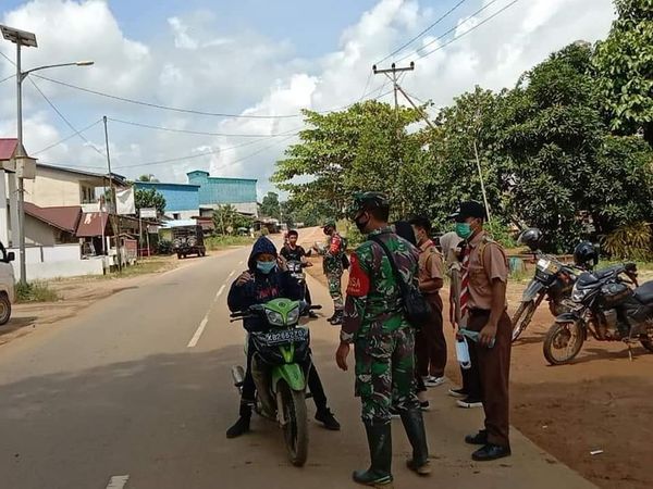 Ketapang – Guna menekan angka penularan Covid-19 diwilayah Jajaran Kodim 1203/Ktp, upaya dan langkah-langkah terus digencarkan oleh anggota Koramil 1203-05/Sei Laur.