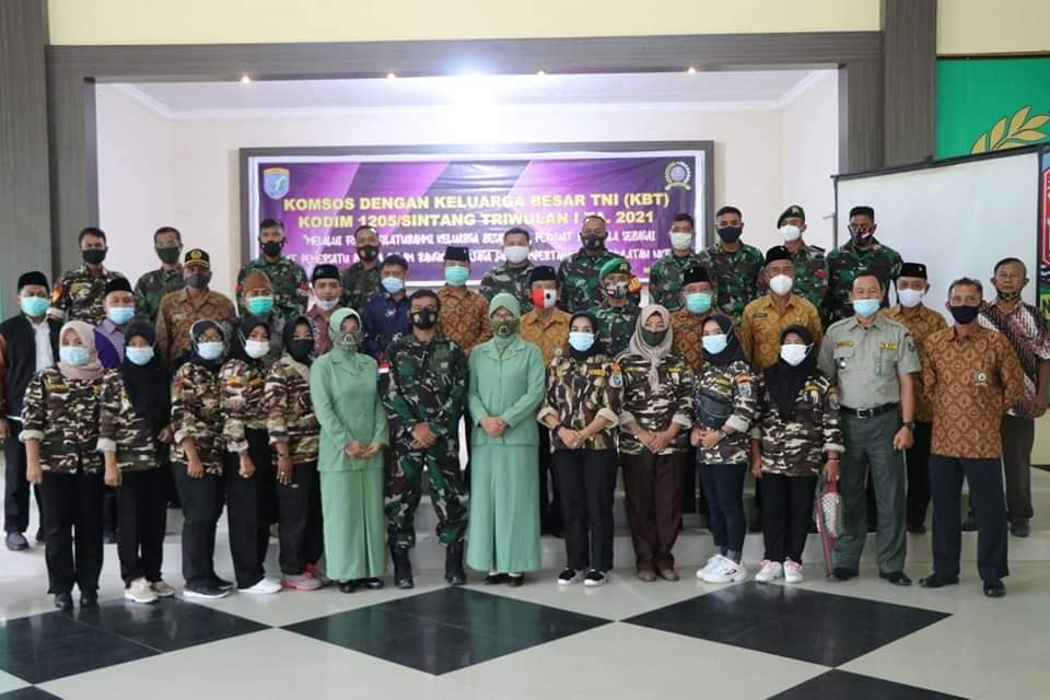Sintang – Guna menjaga dan memelihara hubungan yang harmonis dengan Keluarga Besar TNI (KBT), Kodim 1205/Sintang menggelar kegiatan Komunikasi Sosial (Komsos) dengan KBT di wilayah Kabupaten Sintang yang dilaksanakan di aula Kodim 1205/Sintang, Jl. Pembangunan, Sintang, Rabu (24/03/2021).