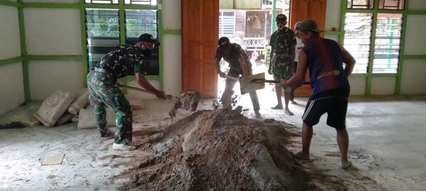 Lebih lanjut disampaikannya, agar memiliki tampilan yang indah dan nyaman sehingga dapat mendukung aktivitas di Masjid menjelang bulan suci Ramadhan, 6 personel Satgas dipimpin Lettu Inf Moh. Naim bersama warga melaksanakan perbaikan berupa pemasangan keramik masjid, serta pembersihan lingkungan disekitar masjid.