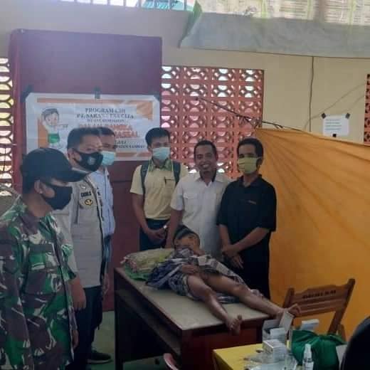 Suasana ini terlihat saat Babinsa 1208-01/Sambas, Serda Antok bersama warganya menghadiri acara sunatan masal, di Balai Pelatihan Desa Tenngguli,