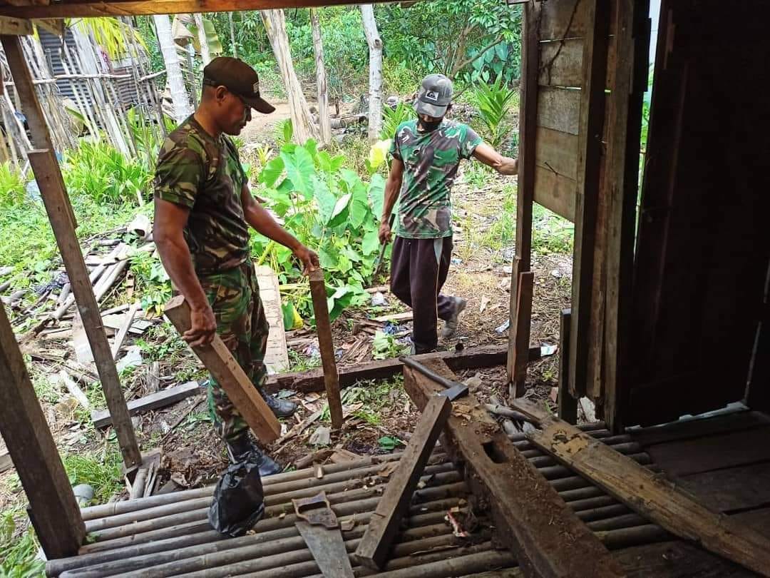 Ketapang – Guna meningkatkan senergitas dengan Instansi terkait serta mempererat kemanunggalan TNI-Rakyat sehingga tercipta kerjasama dalam menciptakan stabilitas dan keamanan lingkungan diwilayah territorial, Serda Munaki Babinsa Pulau Kumbang, Koramil -11/Sph, Kodim 1203/Ktp bersama Serda Hasanudin dibantu warga setempat memperbaiki Pos Babinsa DiDesa Pulau Kumbang, Kec. Simpang Hilir, Kab. Ketapang, Rabu (29/03/2021).