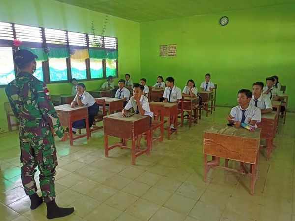 “Kegiatan ini merupakan program kami disamping melaksanakan tugas menjaga keamanan wilayah perbatasan. Selain itu juga kami turut berupaya membantu sekolah diperbatasan yang mempunyai kendala kekurangan Guru, dengan tujuan mencerdaskan anak-anak perbatasan sekaligus memberikan semangat dan motivasi juang kepada siswa-siswi agar lebih giat dalam belajar,” ujarnya.