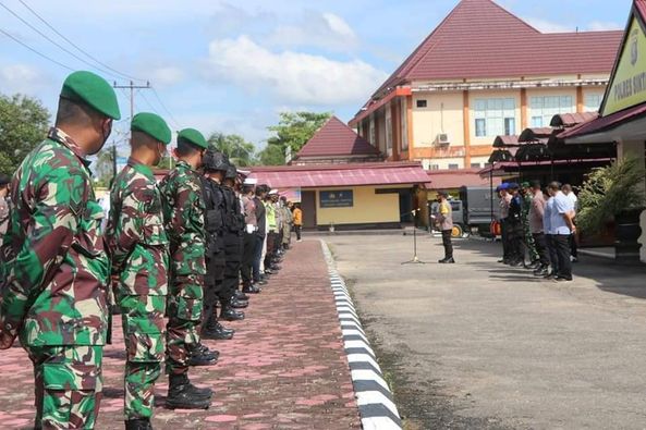 SINTANG – Tim gabungan TNI-POLRI, Kodim 1205/Sintang dan Polres Sintang, gelar apel pengamanan gereja di Kabupaten Sintang dan sekitarnya jelang rangkaian perayaan Hari Paskah di Halaman Polres Sintang, Jl. Bhayangkara, Baning Kota, Kec. Sintang, Kabupaten Sintang, Kamis (01/04/2021).