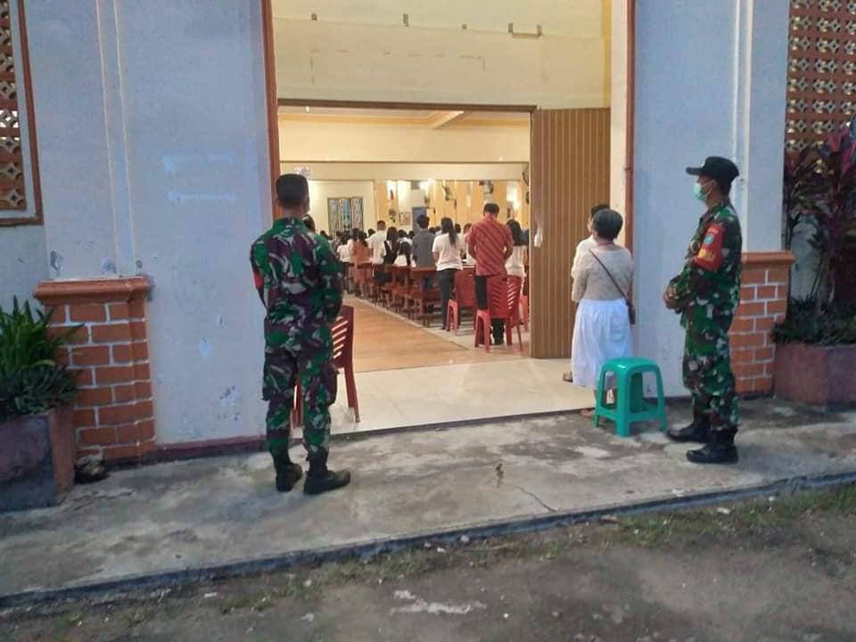 Lanjutnya, “Dari hasil pantauan Babinsa kami, semua pelaksanaan Ibadah ini sesuai dengan protokol kesehatan dijalankan dengan baik, mulai dari masuk Gereja di cek dengan Thermo gun, wajib mencuci tangan, menggunakan masker dan menjaga jarak aman selama Ibadah,” Imbuh Kapten Inf Asswani Kunto.