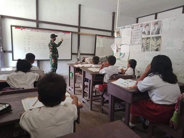 Satuan tugas pengamanan perbatasan, (Satgas Pamtas) RI-MLY Yonif 407/PK, melaksanakan tugas mulia dengan menjadi Tenaga Pendidik disekolah yang berada diwilayah perbatasan yang kekurangan Guru, seperti yang dilakukan oleh anggota Pos Keladan membantu guru di SDN 08 Keladan Dsn. Keladan, Kec. Batang Lupar, Kab. Kapuas Hulu, Kalbar. Kamis kemarin (01/03/2021).