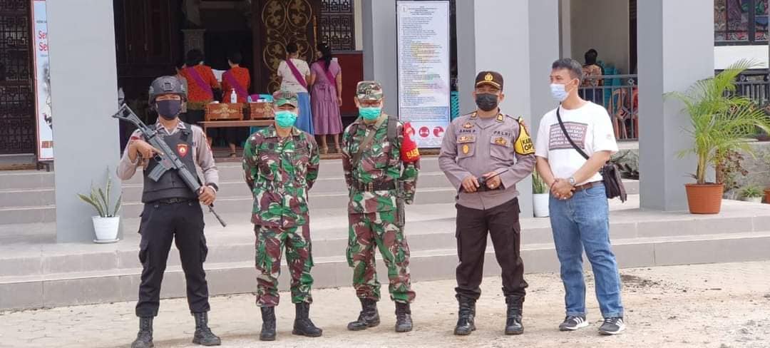 Sintang – Babinsa Koramil 1205-01/Ng Pinoh bersama dengan Polsek Nanga Pinoh melaksanakan kegiatan pengamanan ibadah Paskah di Gereja GKII Ng Pinoh, Kabupaten Melawi, pada Jum’at (02/04/2021).
