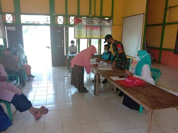 Dansatgas menjelaskan bahwa kegiatan tersebut dilaksanakan atas kerja sama antara Pemerintah Desa Temajuk dengan Pos Pamtas Temajuk Satgas Yonif 642/Kps.