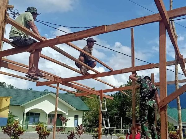 Lebih lanjut disampaikannya, agar memberikan kenyamanan saat beribadah dan mendukung aktivitas di masjid menjelang bulan suci Ramadhan, lima personel Pos Langau 1 dipimpin Serda Diaz bersama warga melaksanakan pembuatan atap depan Masjid.