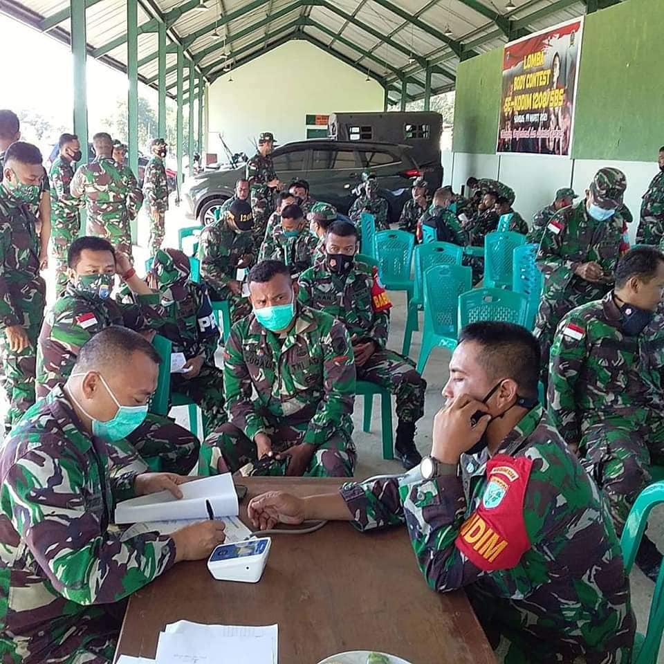 Sambas – Sebagai persyaratan untuk uji kenaikan pangkat dan semapta periodik, kodim 1208/Sambas bersama tenaga medis dari Rumkit Tingkat IV Singkawang yang dipimpin oleh Lettu Ckm Boby melaksanakan pemeriksaan kesehatan yang bertempat di garasi Makodim Sambas, Selasa (6-4-21)
