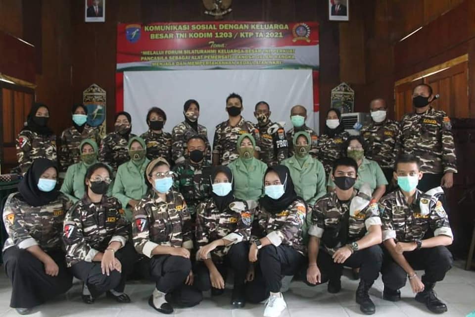 Ketapang – Kodim 1203/Ktp menyelenggarakan kegiatan pembinaan Keluarga Besar TNI (KBT) Triwulan I Tahun 2021 yang berlangsung di Aula Makodim 1203/Ktp Jalan Letjend S. Parman Kel. Sukaharja, Kec. Delta Pawan Kab. Ketapang, Rabu (7/4/2021)